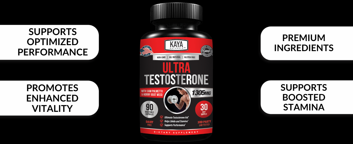Kaya Naturals Super Testosterone - Men\'s Testosterone Booster contains Tongkat Ali, Horny Goat Weed, Tribulus terrestris - Energy - 90 capsules