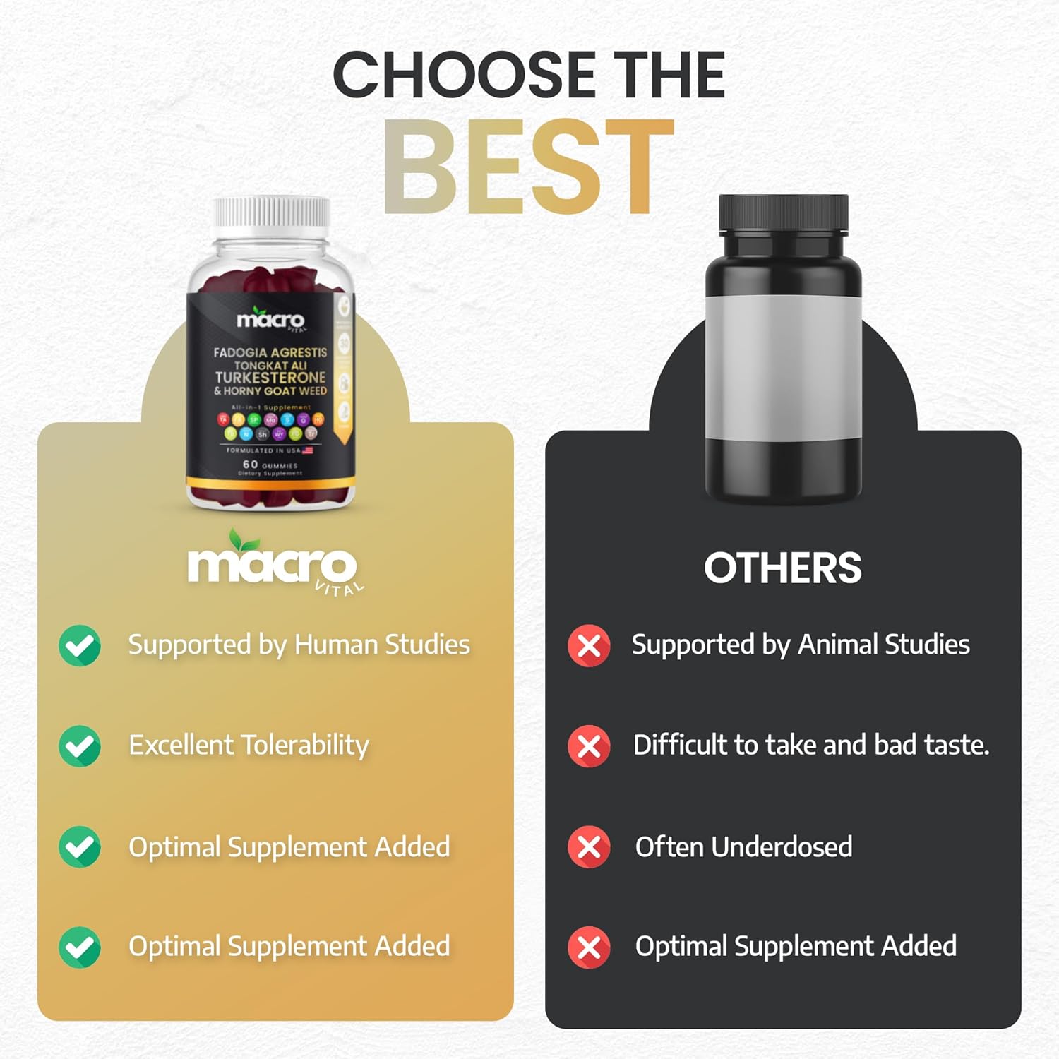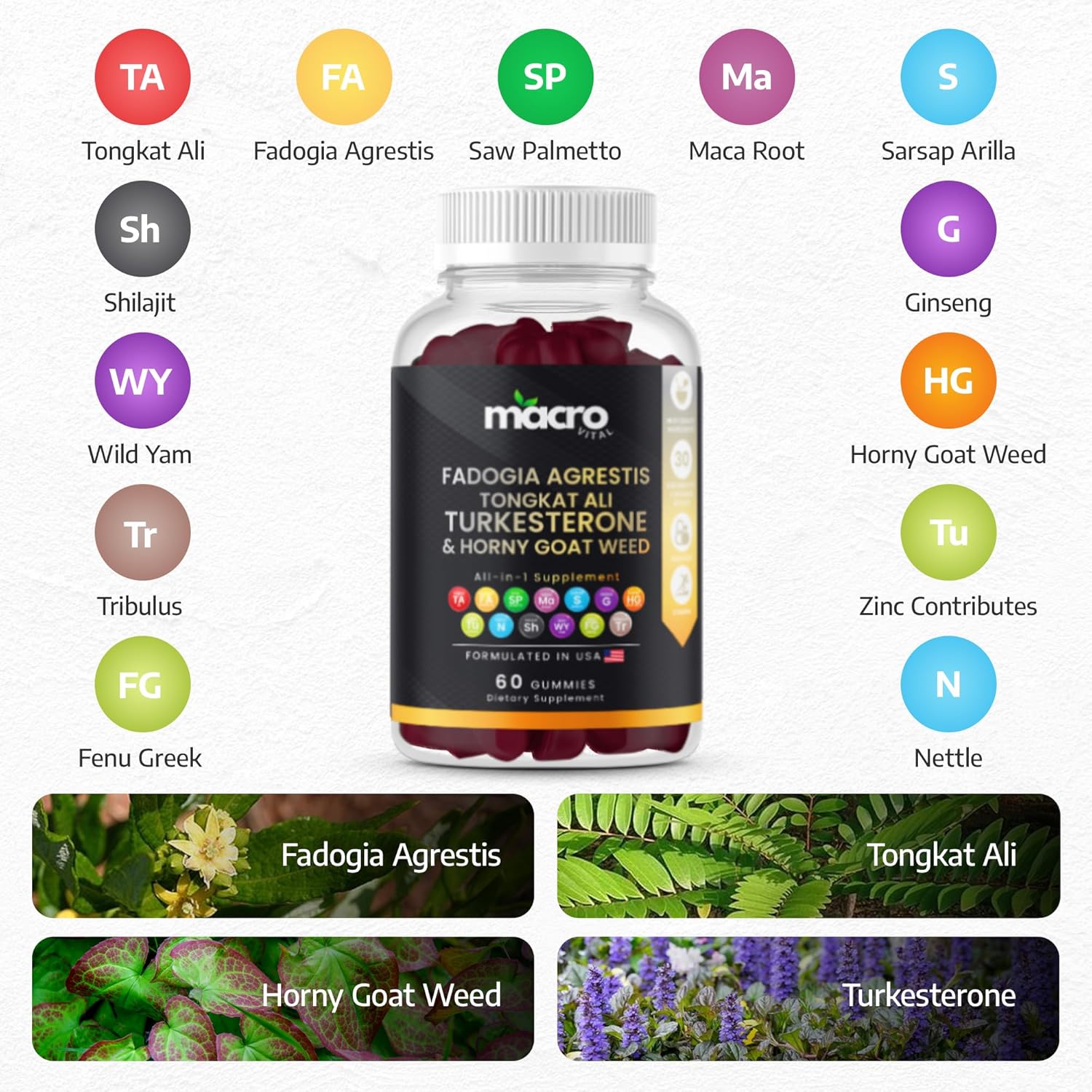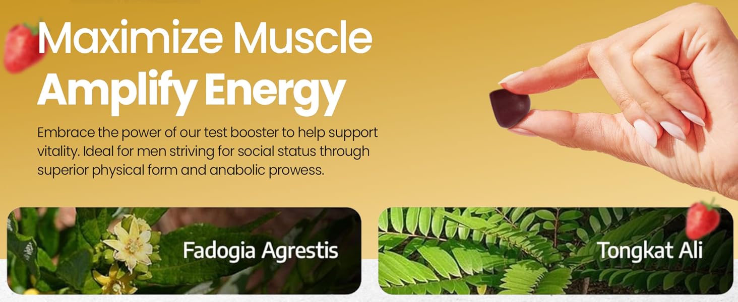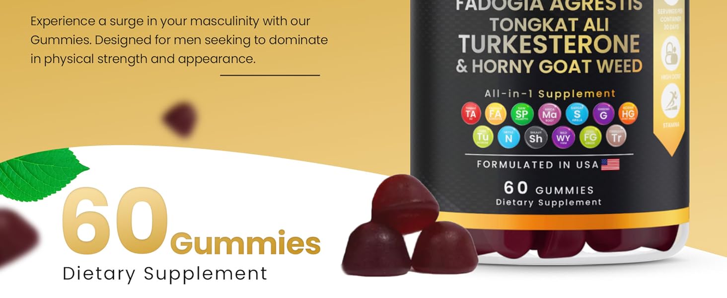 Male testosterone booster supplement,Turkesterone,Tongkat Ali, Horny goat weed, maca root, Tribulus terrestris, Deto Gummy 60Ct