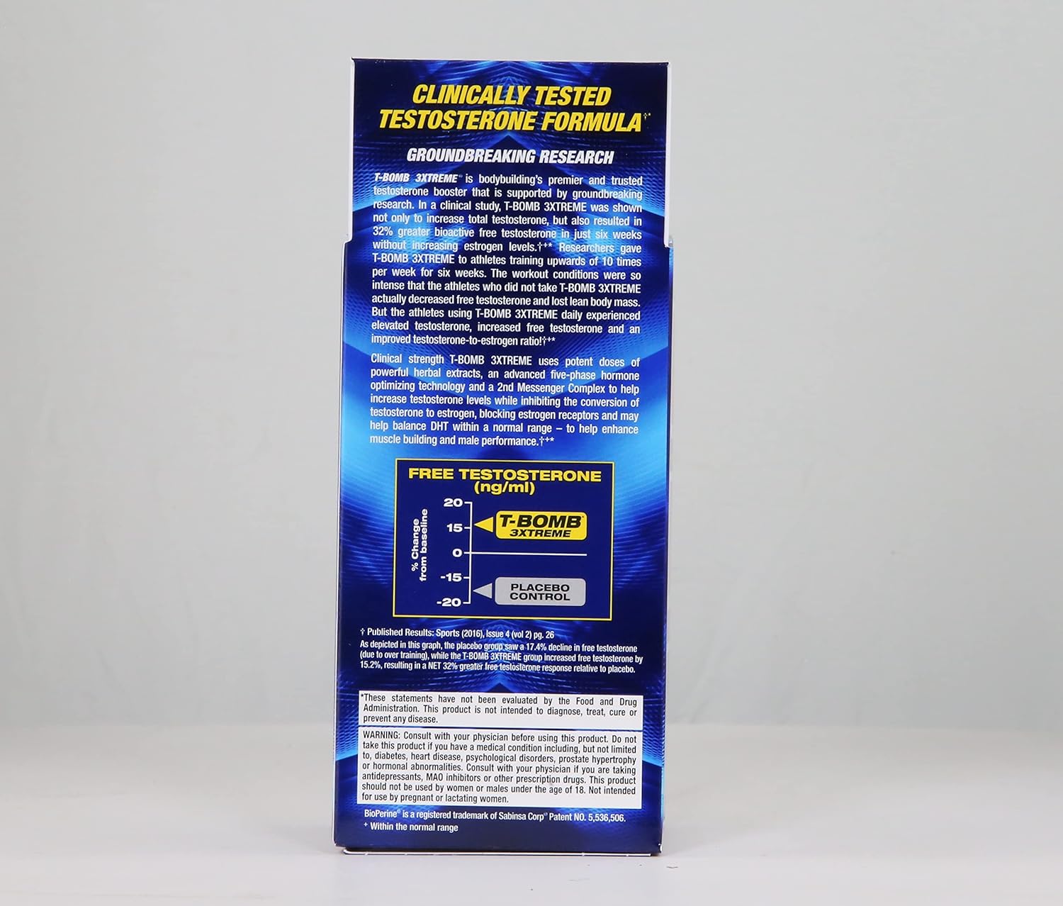 Clinical test of MHP T-Bomb 3xtreme, male testosterone booster, increased libido,168 count