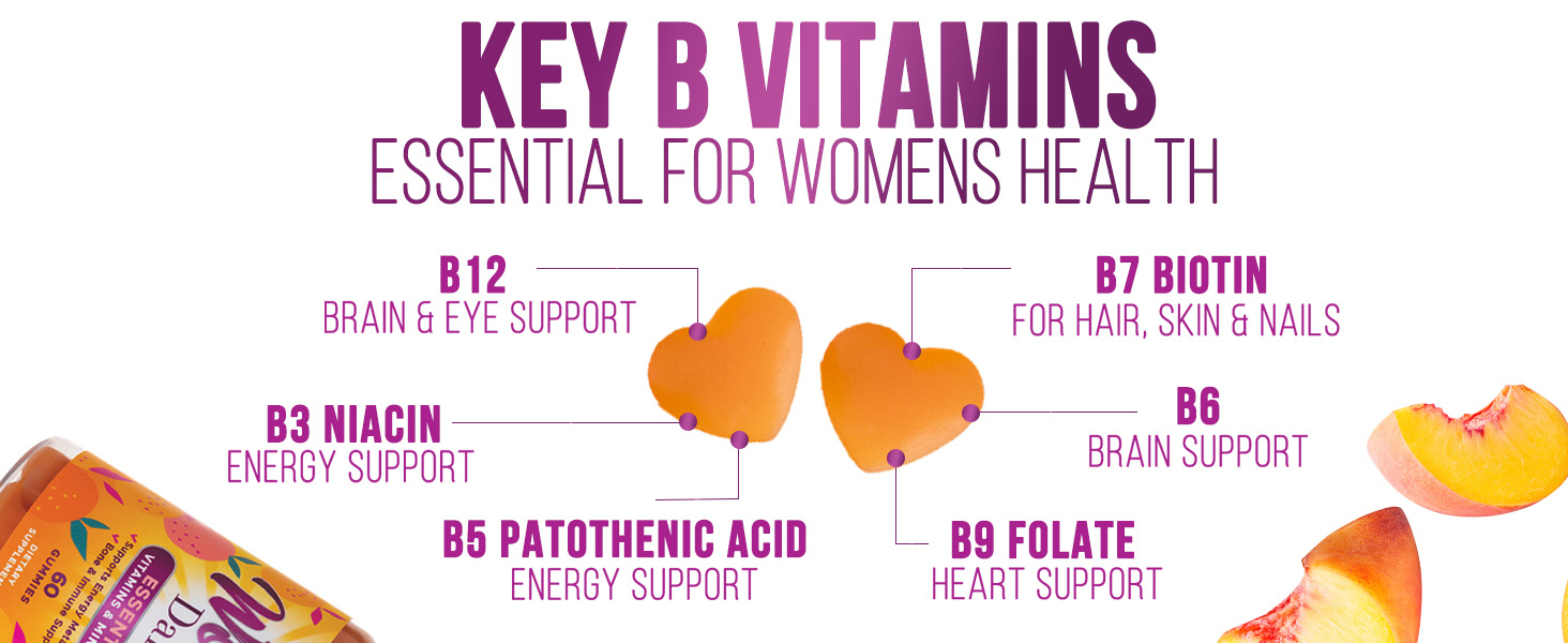 Womens Complete Daily Multivitamin Gummies contain vitamins A, C, D, E, B6, B-12, biotin and calcium 120 gummies