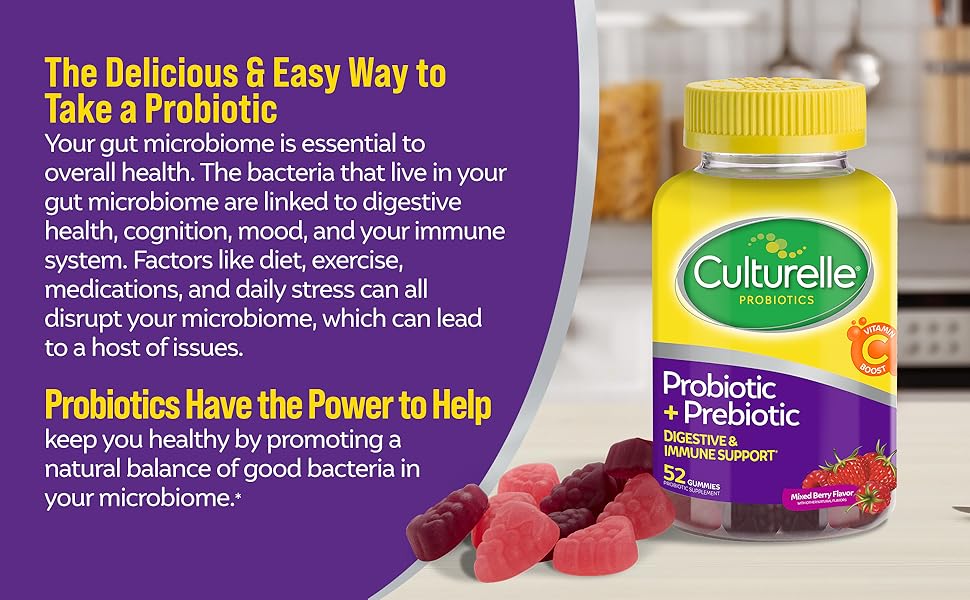 Culturelle Kangcuile Men\'s and Women\'s Daily Probiotic Gummies, berry flavor,52 pieces, natural source daily probiotics · non-GMO and vegan