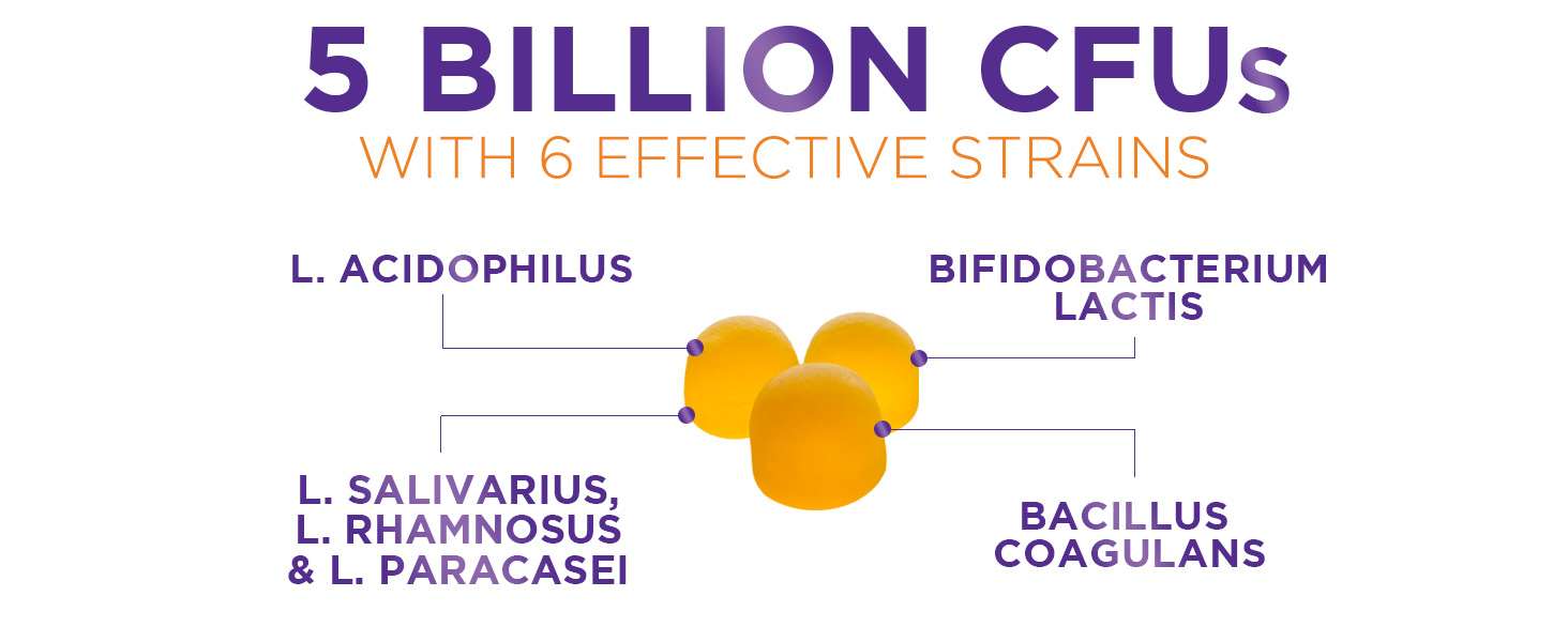 Probiotic gummy candies for men and women -5 billion colony units intestinal health support gummy candies, probiotic strains for immune support, non-GMO and vegetarian -120 gummy candies