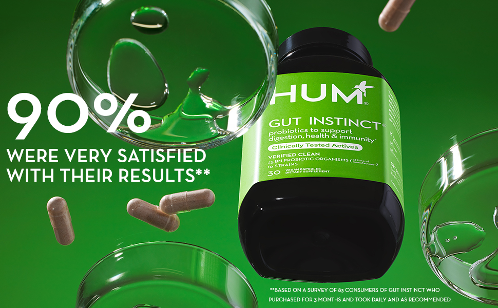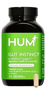 HUM Gut Instinct(30-day supply)- Daily Probiotics for digestive health of men and women - Lactobacillus + Bifidobacterium strains for bloating and immune support