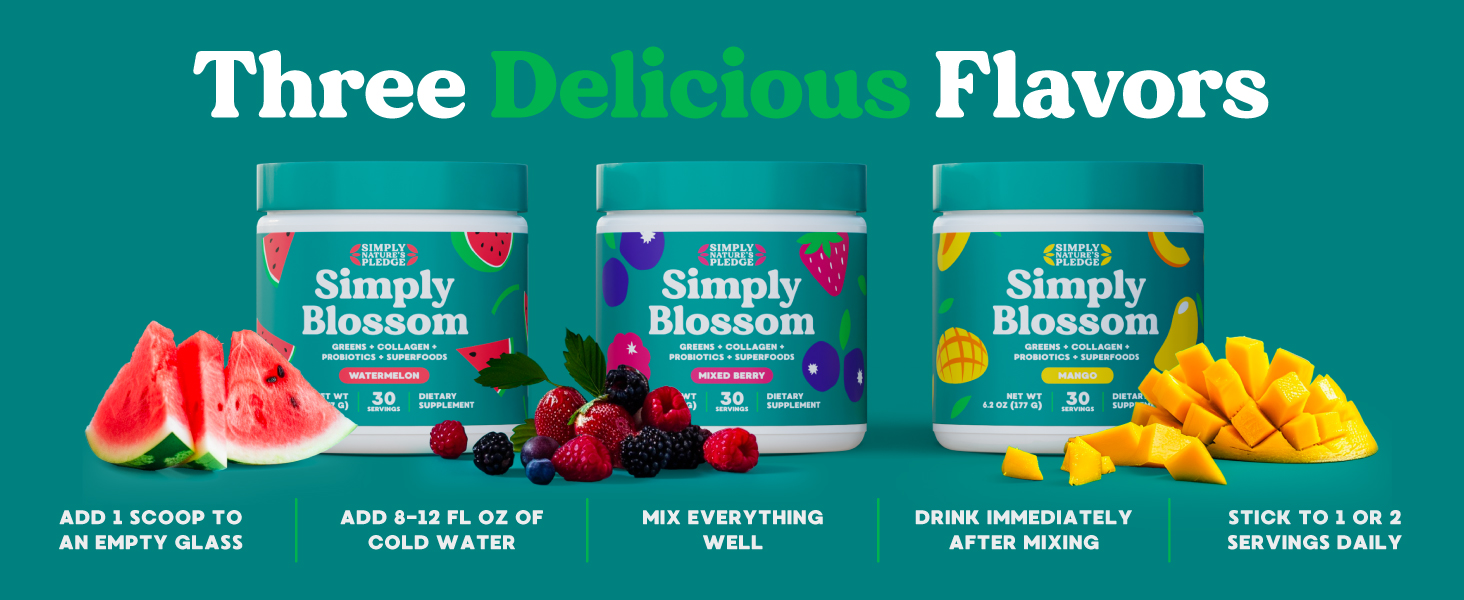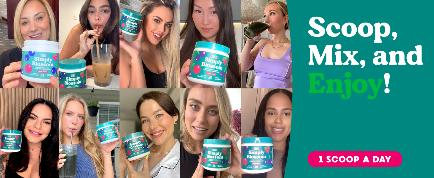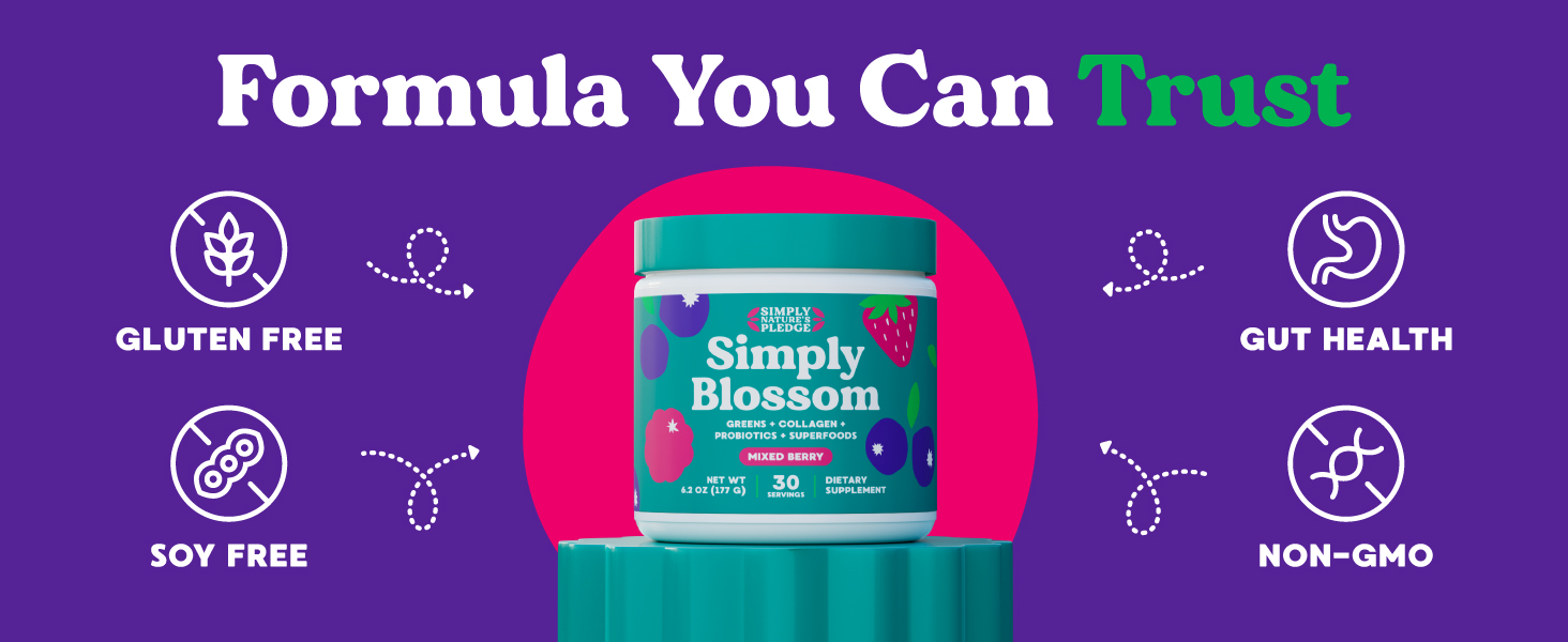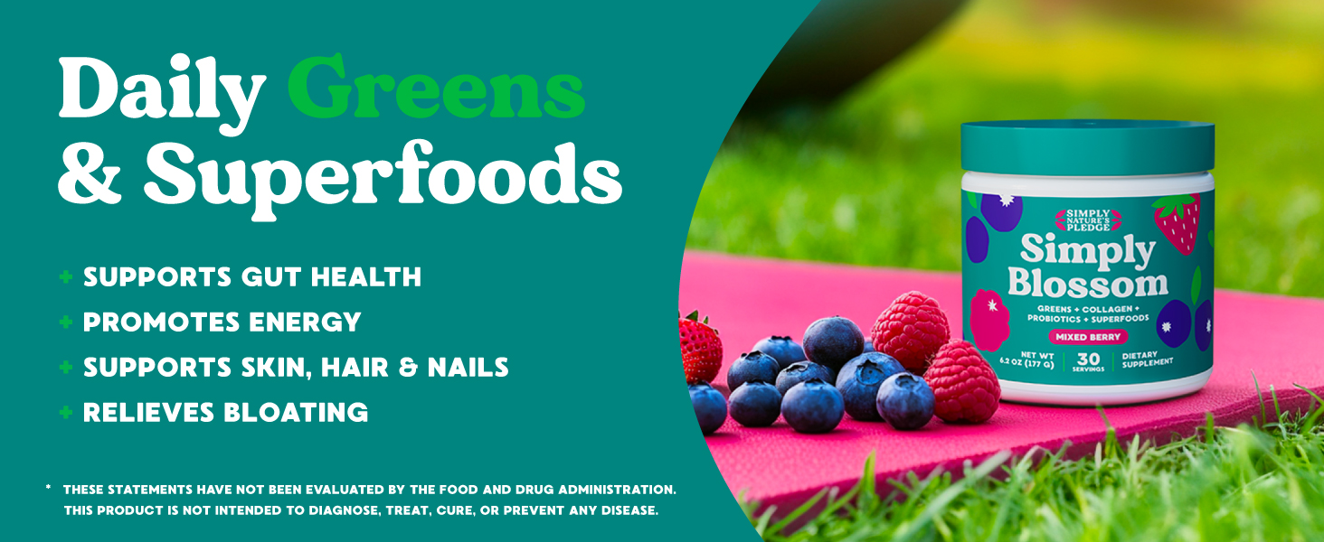 Simply Blossom Nutrition - Daily Green and superfood powder + collagen + Probiotics promote women\'s digestive health and relieve bloating