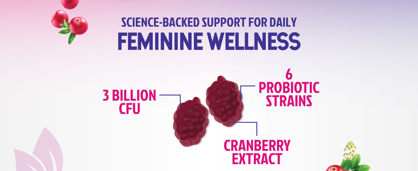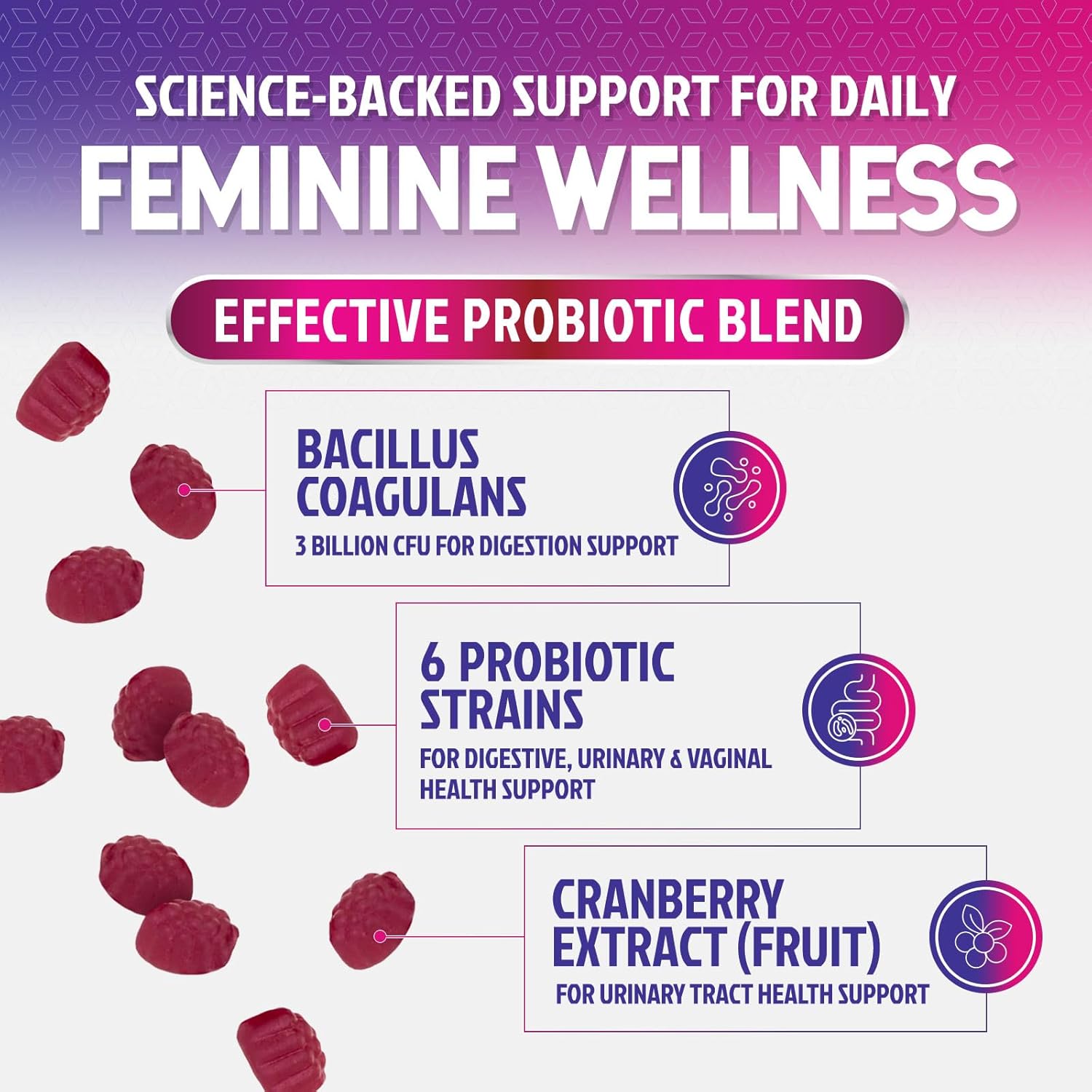 Ladies\' Probiotics contain cranberry gummies -6 high-quality strains for PH balance, digestive health, and immune support, 3 billion colony units - 60 gummies