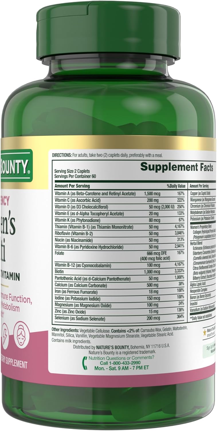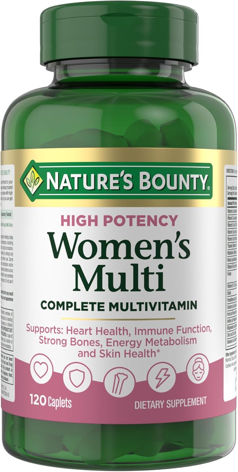 Nature\'s Bounty High-Efficiency Women\'s Multivitamin, a daily vitamin containing vitamin C, supports heart health and immune function, essential nutrition for women,120 capsules