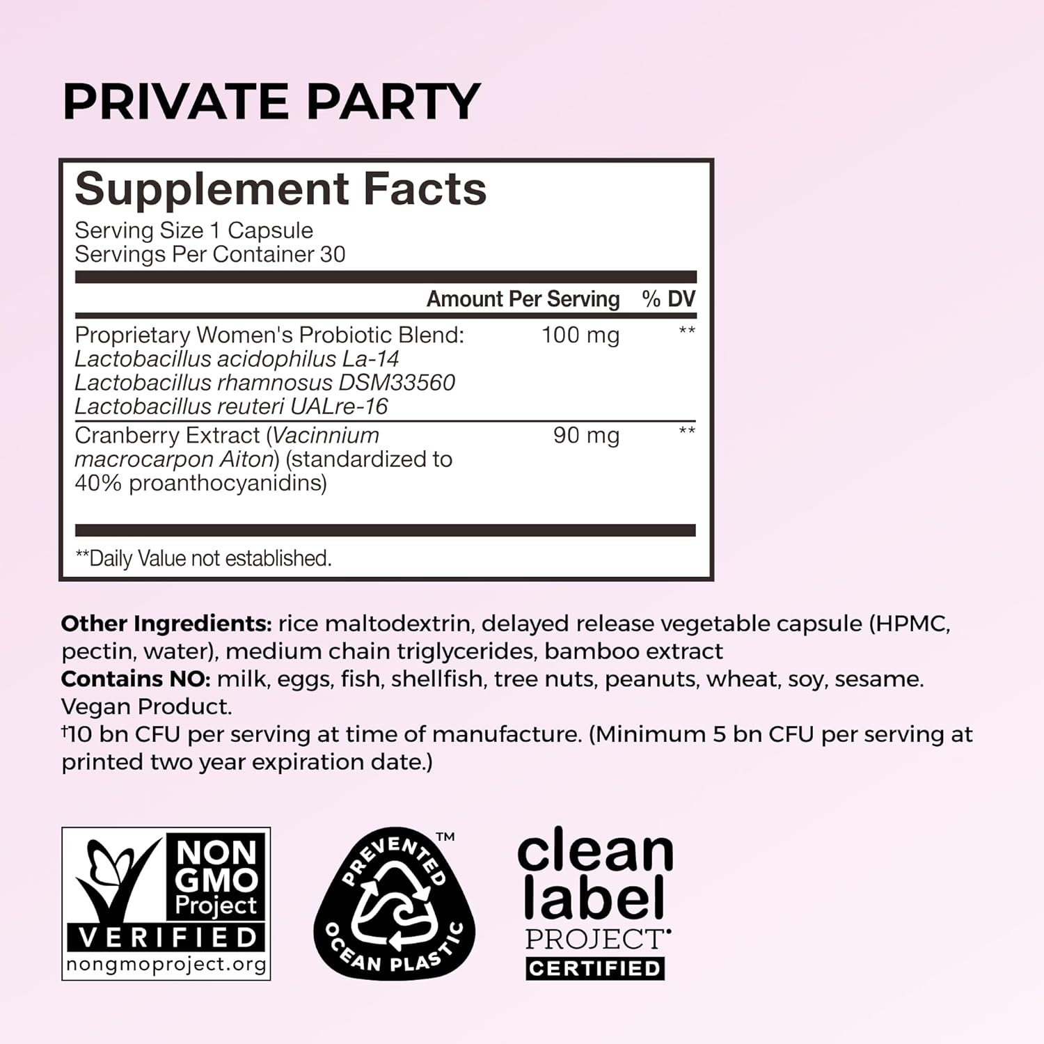 HUM Private Party - Probiotics promote women\'s health,pH balance supplement and urinary tract support, containing Cranberry and lactic acid bacteria Mixture. Cranberry pills (30 capsules)
