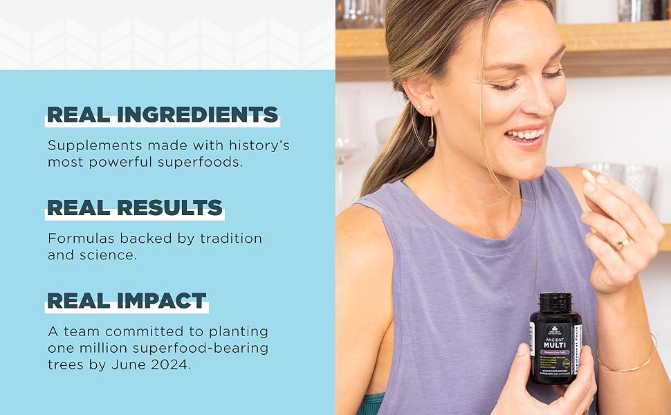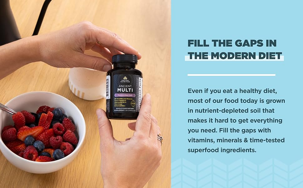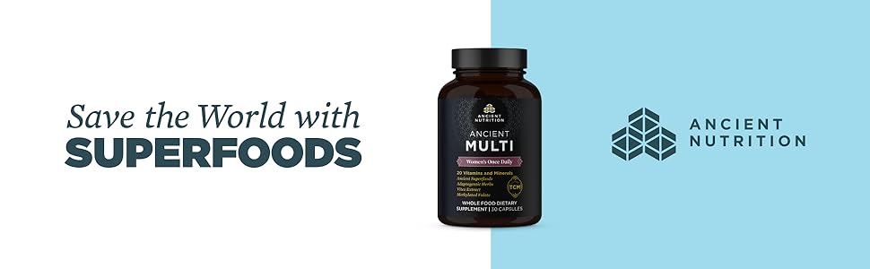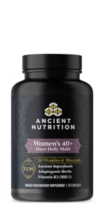 Ancient Nutrition Women\'s Multivitamin, a daily supplement for women, contains methylated vitamins B, C, K2, magnesium, folic acid and iron