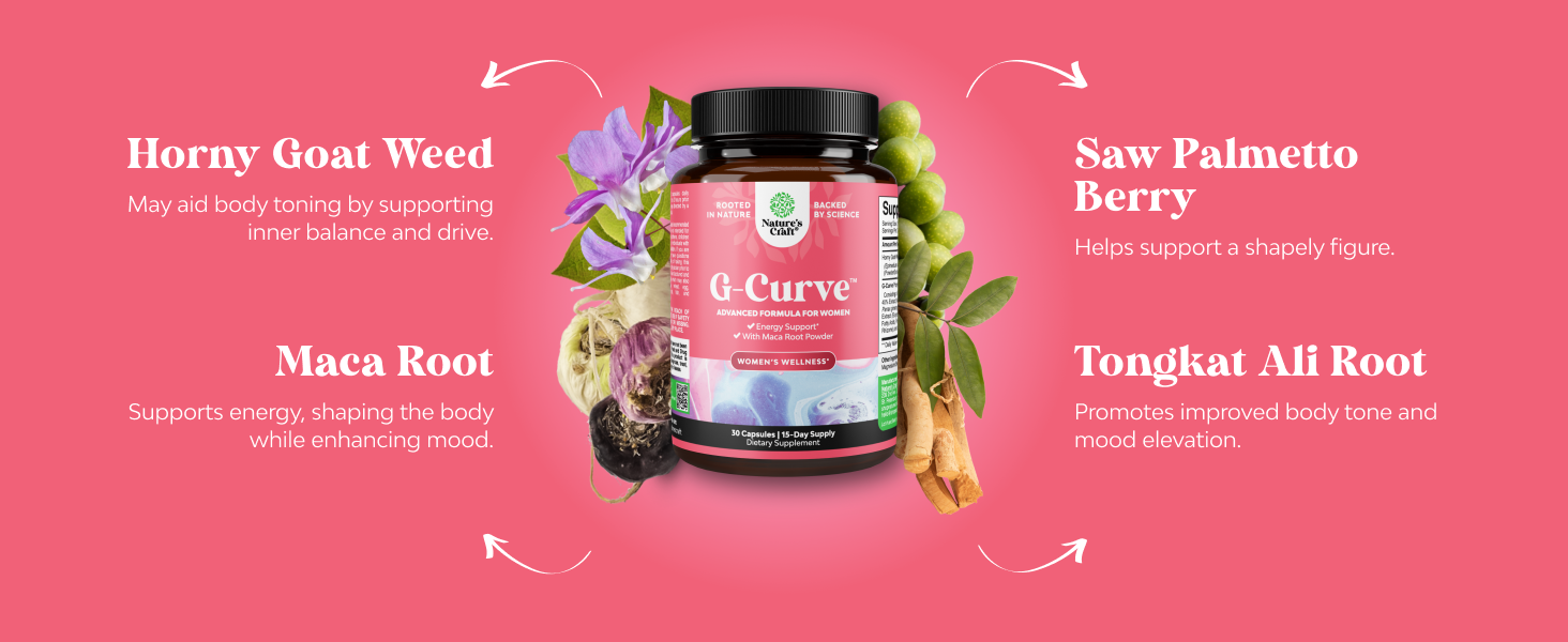Natures Craft G Curve Female Keratin Goat Weed - Vitality Female Hybrid Maca Root Mother and Tribulus terrestris enhance energy and emotional performance