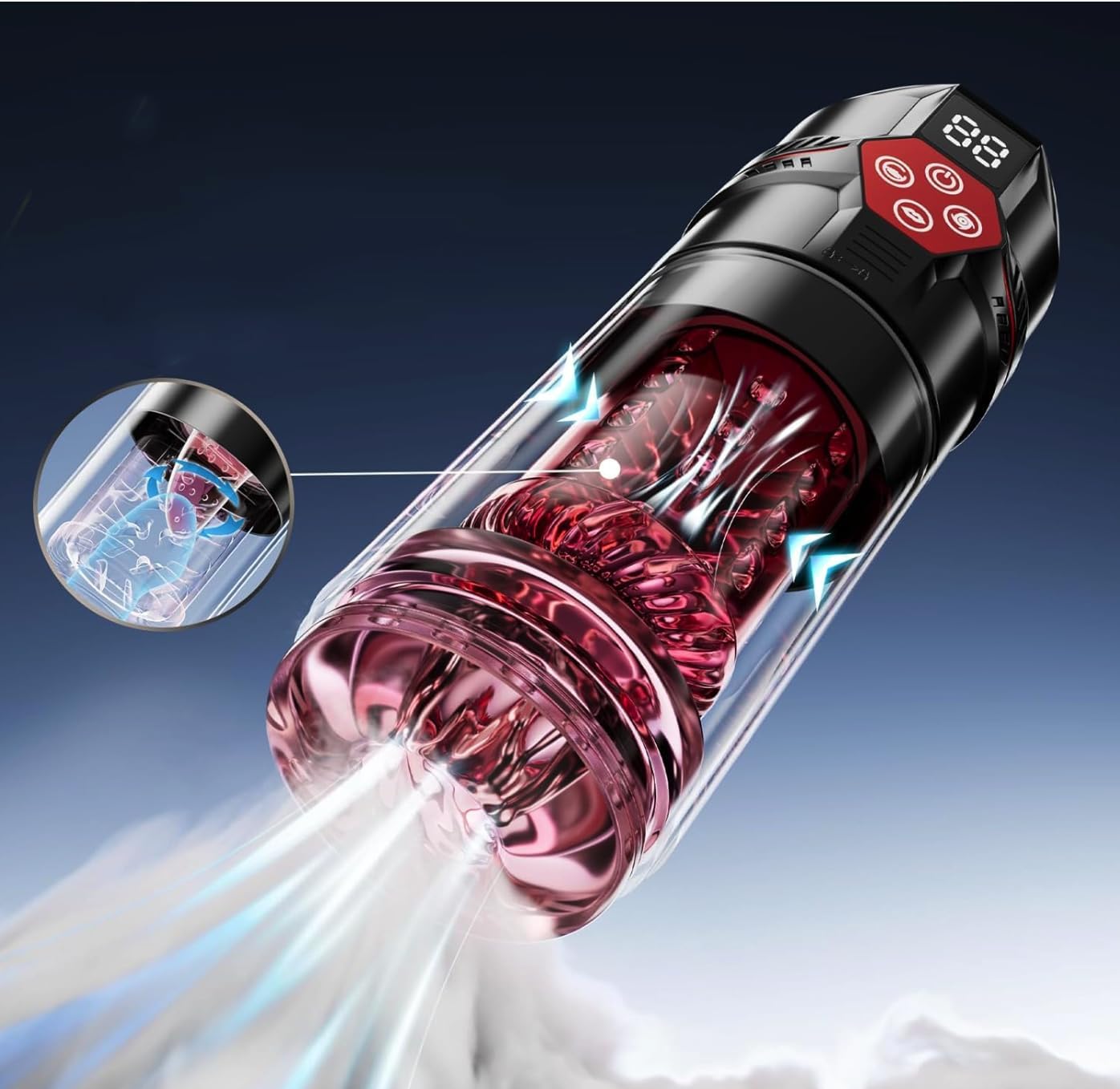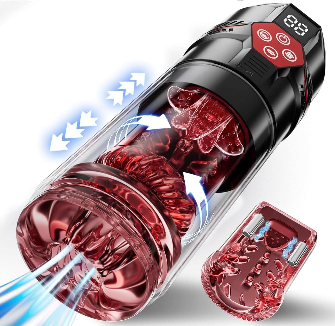 Male Masturbator Penis Pump - Men's Sex Toys with Upgrade 12 S Vacuum Pump & 7 Thrusting Rotating Vibrating Sucking Licking LCD OD64198