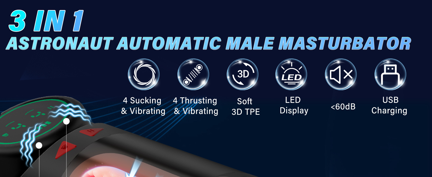 Adult toy pump with 4 suction, vibration and thrust modes, male sex toy pocket male massage device for the genital area for stimulation, male sex toy LED display screen