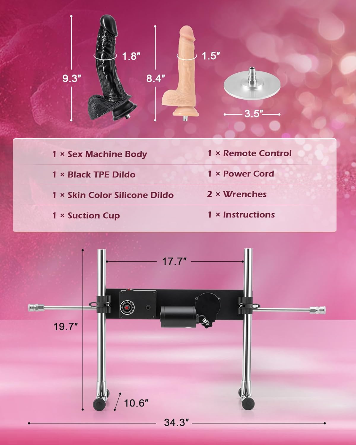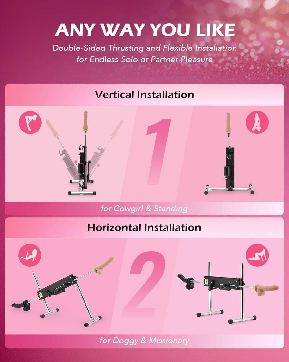 Y-NOT automatic sex machine, double-sided thrust prosthetic penis machine, with 3 accessories and remote control, suitable for female and male couples