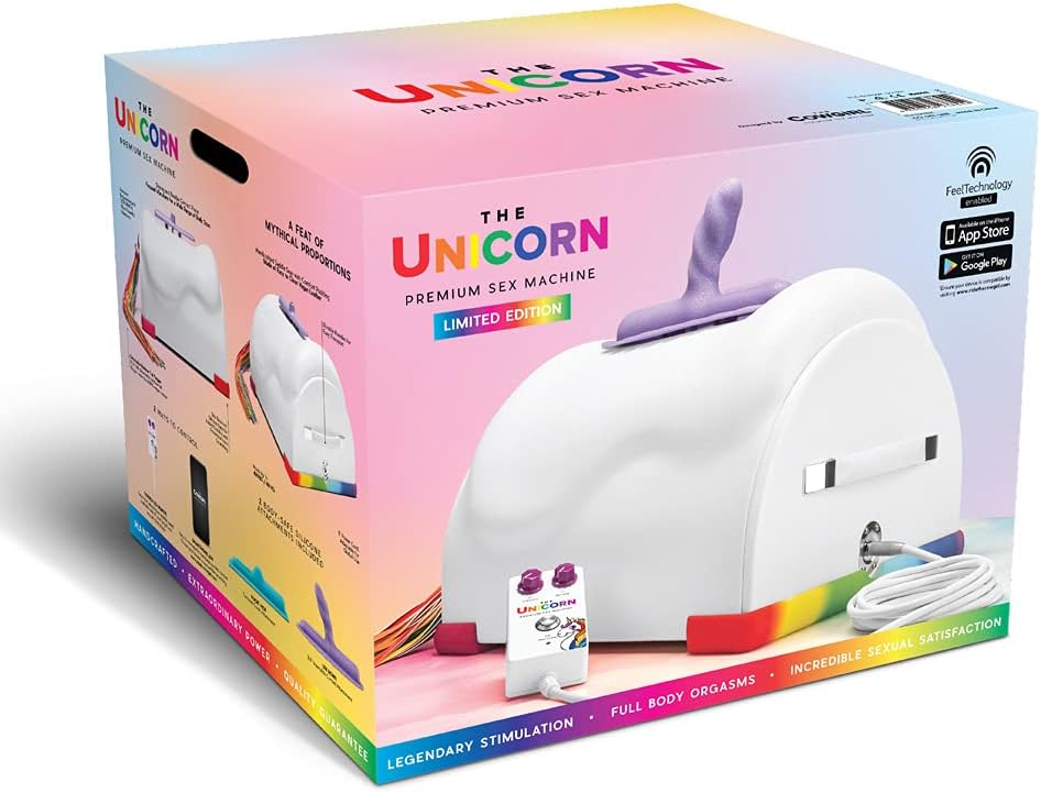 Unicorn Advanced Riding Sex Machine with Uni Horn & Magic Hide silicone accessories, adult sex saddle toy