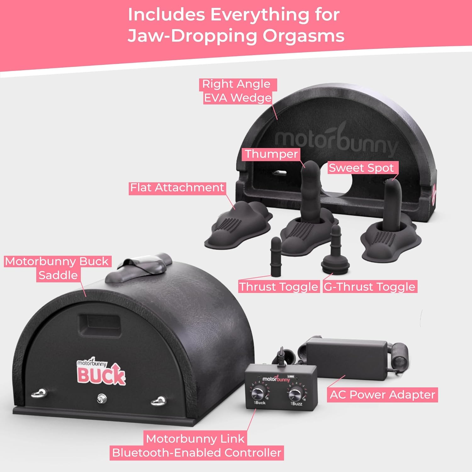 Motorbunny Buck riding vibrator and self-pushing prosthetic sex machine with 3 accessories, thrust, vibration, remote application control prosthetic machine