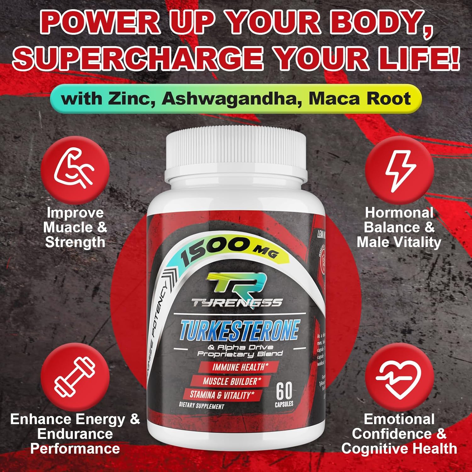 Men\'s Testosterone Supplement - Men\'s Testosterone booster, 4x strength Men\'s enhancement supplement, containing turmeric -60 capsules